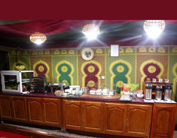 El bar / saló marroquí El bar, amb taules altes a una banda i saló marroquí a l’altra, equipat amb TV, us ofereix un espai de reunió i de relaxació. Hi podeu beure tè, cafè, suc de taronja natural, refrescos, vi, cervesa i diversos aperitius i digestius.